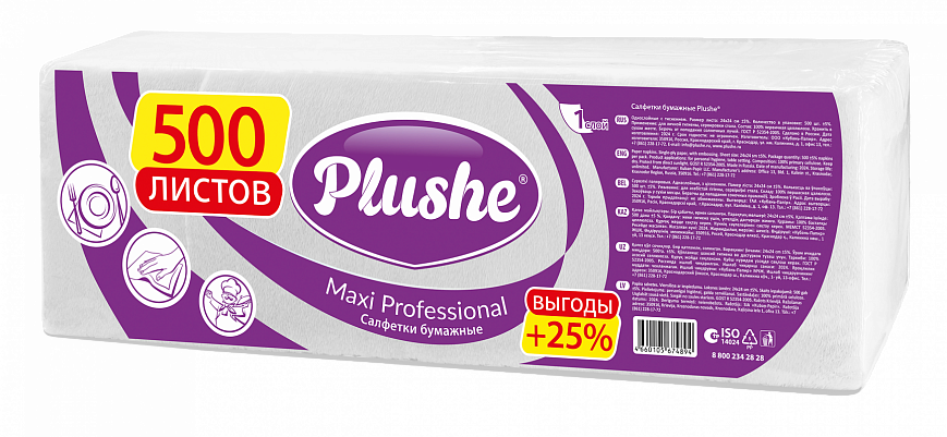 Plushe салфетки 24х24 1сл Белые 500л - [5шт]
