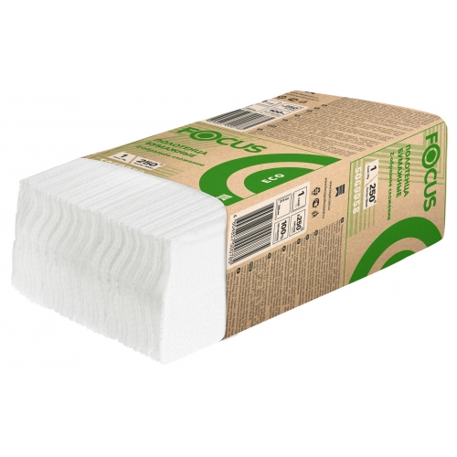 Однослойные белые бумажные полотенца Focus Eco имеют тиснение. Они удобны в использовании и быстро впитывают влагу. Подходят для диспенсеров с листовой подачей. Идеальны для туалетных комнат с высокой проходимостью. Изготавливаются из 100% первичной целлюлозы. Полотенца не оставляют запахов. Они комфортно ощущаются в руках и экологичны. Размер листа составляет 24×21,5 см. Белизна бумаги — 85.