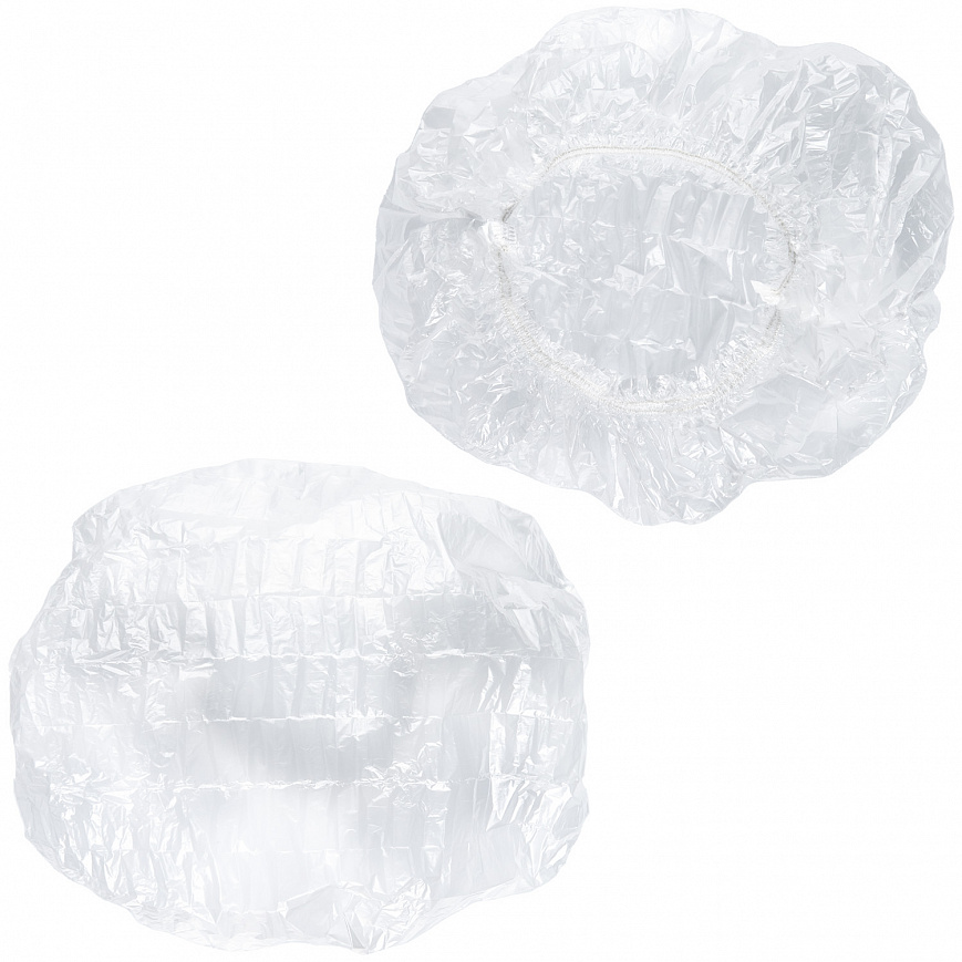 Универсальные шапочки из полиэтилена. Благодаря прочному материалу надежно защищают от воды, с помощью эластичной резинки хорошо держатся на голове. Используются в парикмахерских, спа-центрах, банных комплексах.