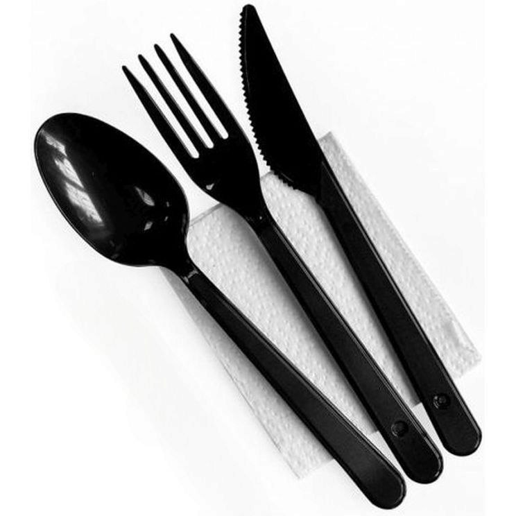 Premium Набор Черные: вилка, нож, ложка, салфетка [500шт]