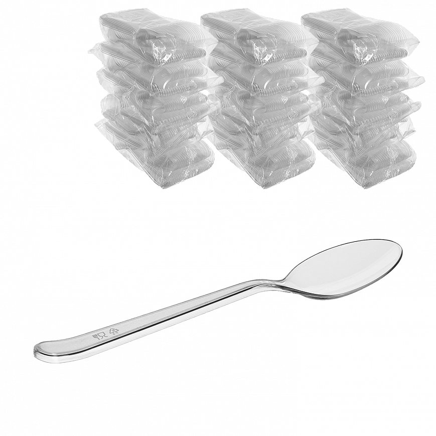 Пластиковая одноразовая ложка. Прозрачная. В упаковке 50 штук.