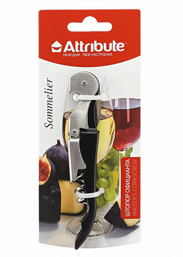 Складной штопор официанта Sommelier бренда ATTRIBUTE выполнен из нержавеющей стали и ABS-пластика. Аксессуар займет достойное место на кухне. Он отличается компактностью и малым весом. Инструмент удобно носить с собой и хранить в ящике стола. Нержавеющая сталь характеризуется прочностью, износоустойчивостью. Материал хорошо формируется, не подвержен коррозии, а также отвечает современным гигиеническим нормам. Он сохраняет свои первоначальные характеристики на протяжении длительного периода. Складным штопором удобно открывать бутылки с вином и винными напитками. С его помощью пробка извлекается безопасно, без особых усилий. Чтобы откупорить бутылку таким инструментом, не потребуются особые навыки и физическая сила: благодаря гибкому винтовому стержню происходит легкое вкручивание штопора. Конструкция ножа «сомелье» состоит из двух «ступеней». Первая используется для сдвигания пробки, а вторая – полностью вытаскивает ее из бутылки.