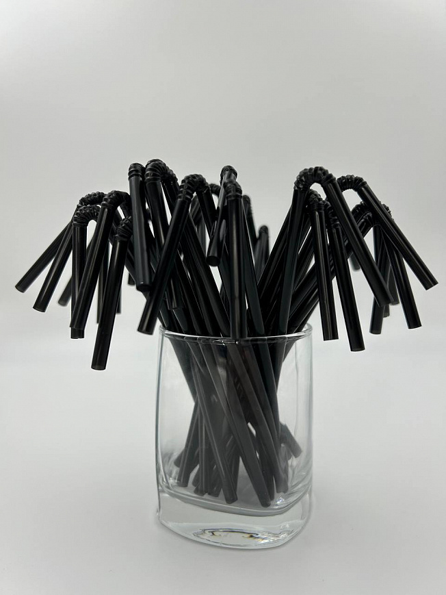 Трубочки с гофрой, черные, используются для украшения стола, а также для комфортного приема напитков. Размер 5*240мм. В упаковке 250 штук.