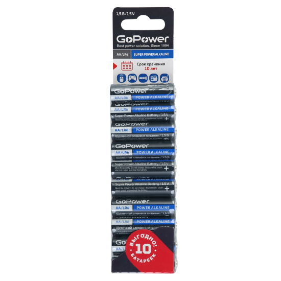 Щелочные батарейки универсального назначения GoPower SUPER POWER ALKALINE идеально подходят для большинства современных устройств, включая гаджеты и устройства с высоким энергопотреблением. Батарейки безопасны для окружающей среды, так как не содержат примеси тяжелых токсичных металлов - свинца, кадмия и ртути.