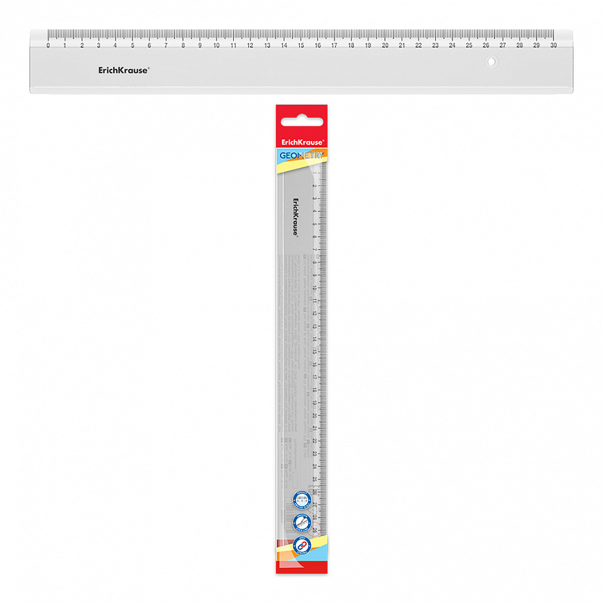 Прозрачная линейка из высококачественного пластика. Четкая печать односторонней шкалы. Длина разметки – 30см.