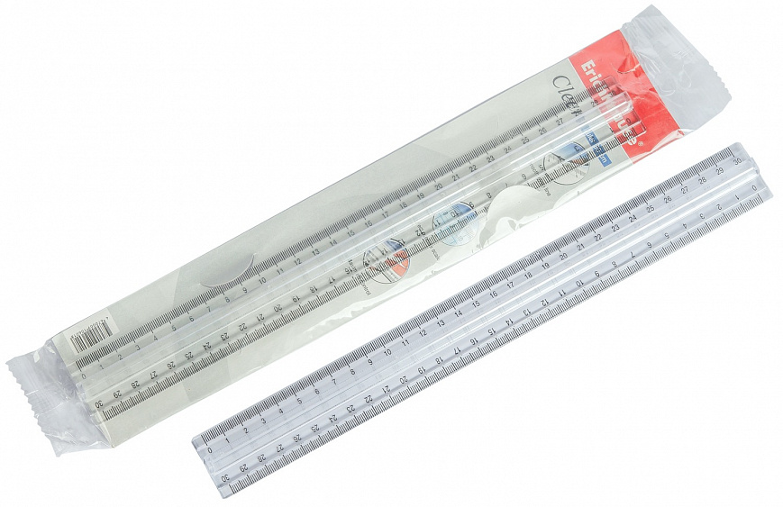 Линейка из высококачественного прозрачного пластика с краями для черчения тушью. Точная миллиметровая шкала; длина разметки составляет 30см.