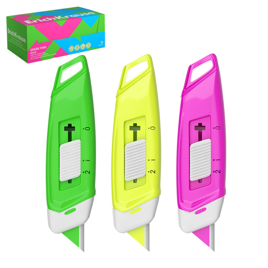 Нож канцелярский, 13 мм, автофиксатор, пластик, с керамическим лезвием, ассорти 3 вида, Neon, Spark Mini, Erich Krause