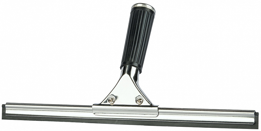 Сгон (стяжка) для чистки окон 35 см.Состоит из ручки-держателя, стального желоба и резиновой стяжки (сквиджа). Ручка-держатель изготовлена из нержавеющей стали и снабжена резиновой накладкой для большего удобства работы и предотвращения выскальзывания из руки. При необходимости ручка-держатель может насаживаться на удлинительный шест (ручку-удлинитель). Зажим ручки-держателя позволяет закреплять стальной желоб с резиновой стяжкой в различных положениях относительно центральной оси ручки (в зависимости от выполняемой задачи). В ручку-держатель могут закрепляться стальные желоба с резиновыми стяжками разной длины (от 35 до 55 см). Резиновые стяжки (сквиджи) являются расходным материалом и легко заменяются в случае износа. Материал конструкции: нержавеющая сталь. Рабочая ширина 350 мм.
