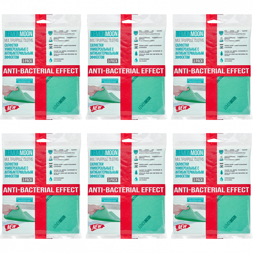 LM Салфетка вискозная 34х38 - 3шт антибактериальная (30уп*кор) пл.110г/м