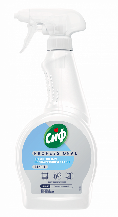 Cif Professional - чистящий спрей для стекол, зеркал, нержавеющей стали и блестящих поверхностей. Средство эффективно устраняет грязь, пыль, налет, разводы, пятна от воды и отпечатки пальцев.