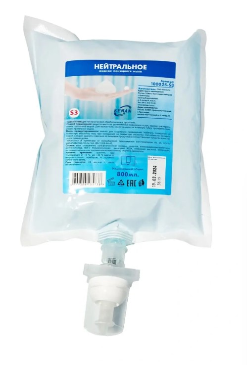 Мыло для мытья рук и тела. Синего цвета, нейтральное. Дерматологически мягкая основа. Аллантоин в составе оказывает смягчающее и увлажняющее действие. Мыло предназначено для диспенсеров жидким дозированием. Это значительно сокращает расход продукта. Не оставляет подтёков и следов на раковине. Картридж герметично запечатан и снабжён одноразовым дозирующим устройством. Это предотвращает риск перекрёстного загрязнения продукта.