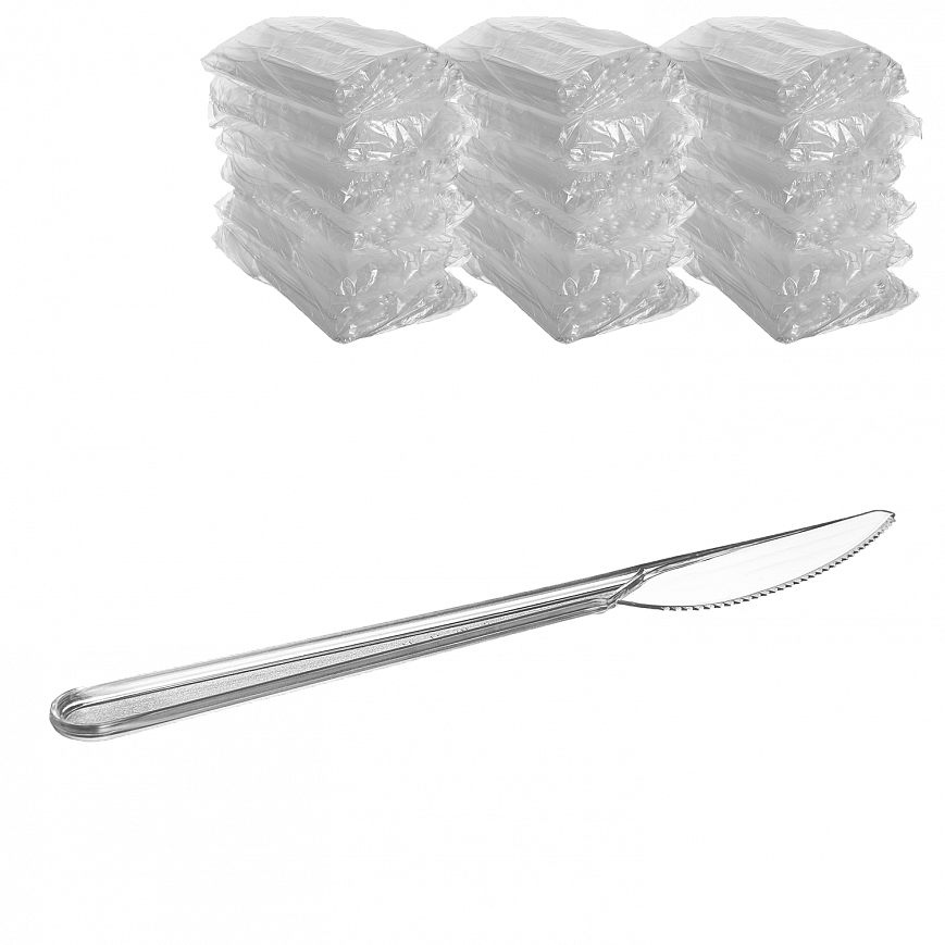 Пластиковый одноразовый нож. Прозрачный. В упаковке 50 штук. Максимально гигиеничный, поскольку не предполагает повторного использования. Изготовлен из устойчивого к сгибанию пластика.
