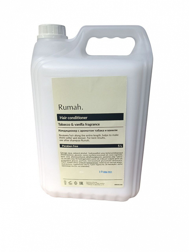 Кондиционер из премиальной коллекции Rumah.Аромат - табак & ваниль. Увеличенный процент парфюмированной отдушки для более глубокого и стойкого аромата.Объем 5л.