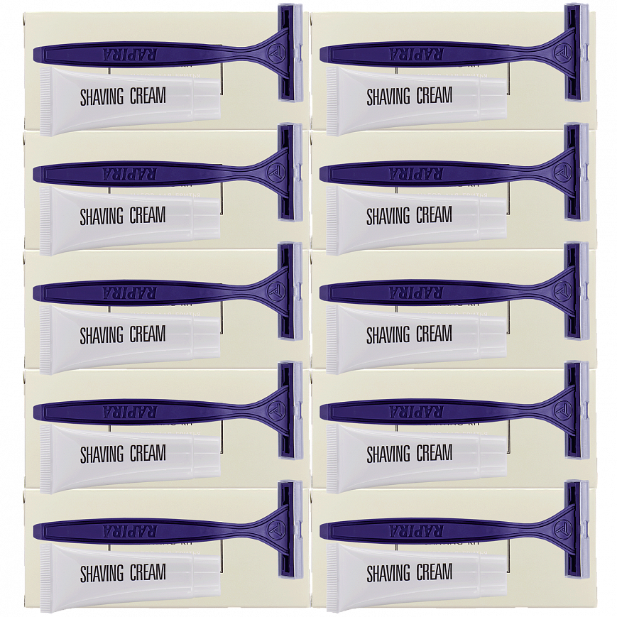 В набор входит одноразовая пластиковая бритва с двумя лезвиями и увлажняющей полоской и крем для бритья в тубе 10 гр. Состав крема: Вода, парафин жидкий, стеариновая кислота, глицерилстеарат, токоферол, парфюмерная композиция, лаурил сульфат натрия, пропилпарабен, динатрий ЭДТА. Упаковка — картонная коробка из коллекции Marrone. Размеры: 11,3×5,0×2,1 см.