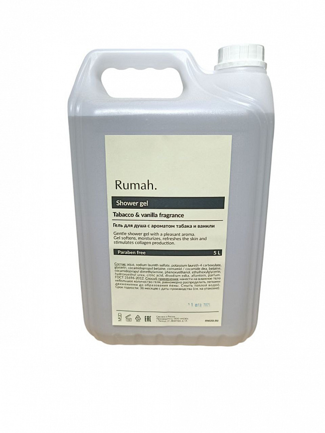 Гель для душа из премиальной коллекции Rumah.Аромат - табак & ваниль. Увеличенный процент парфюмированной отдушки для более глубокого и стойкого аромата.Объем 5л.
