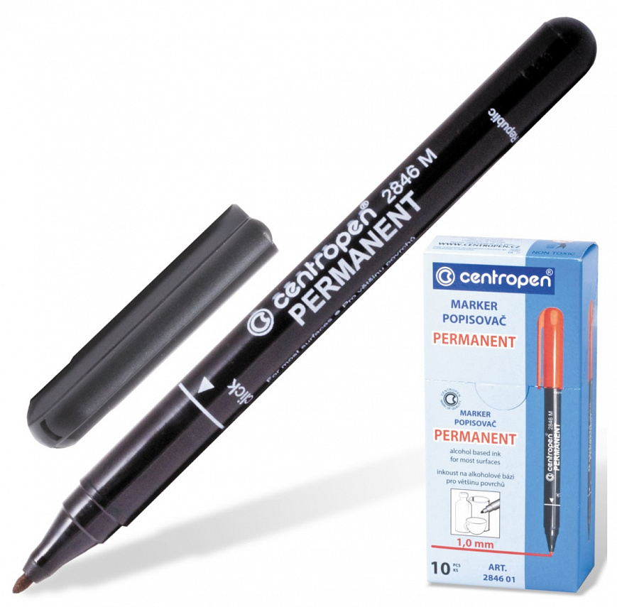 Высококачественный нестираемый перманентный маркер Centropen предназначен для надписей на любых поверхностях, в том числе пластмассе, стекле, пленках.