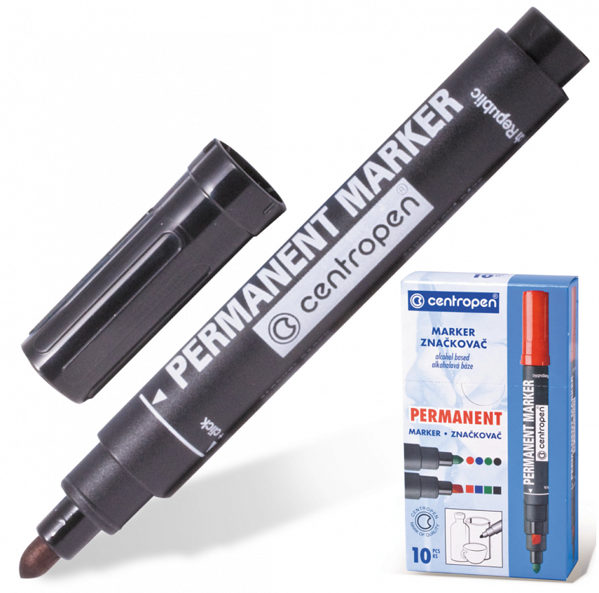 Высококачественный нестираемый перманентный маркер Centropen предназначен для надписей на любых поверхностях, в том числе пластмассе, стекле, пленках.