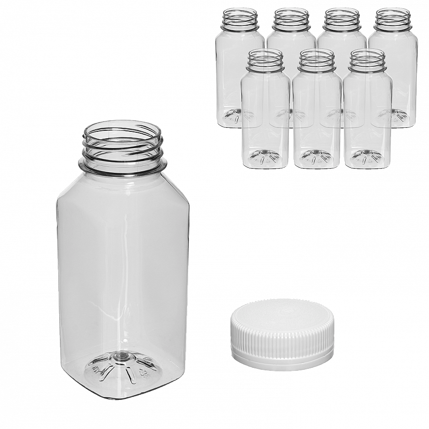 Бутылка + крышка, подходит для розлива соков, компотов, киселей, смузи, детокс напитков. 250мл. ПЭТ.