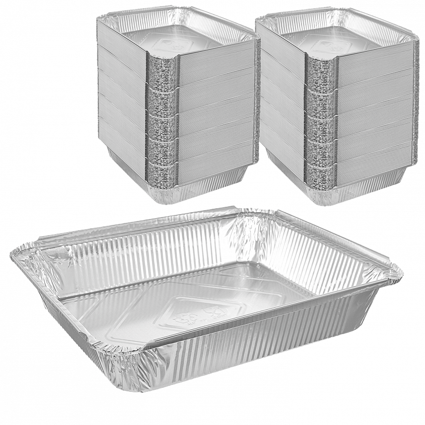 Одноразовые алюминиевые контейнеры c L-бортом при необходимости закрываются пластиковой или картонно-алюминиевой крышкой.