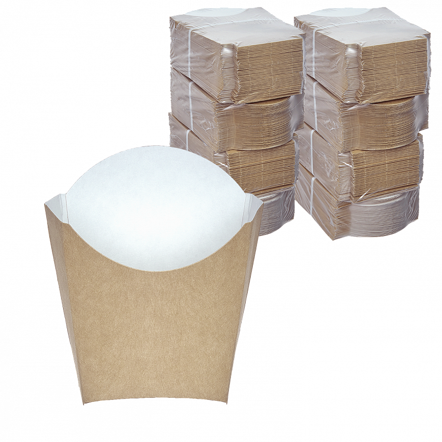 Упаковка для картофеля фри. Эргономичное изделие используется в качестве одноразовой посуды. Экологичность. Пищевая тара изготовлена из натуральных материалов и легко утилизируется, что сводит к минимуму вред, наносимый природе.