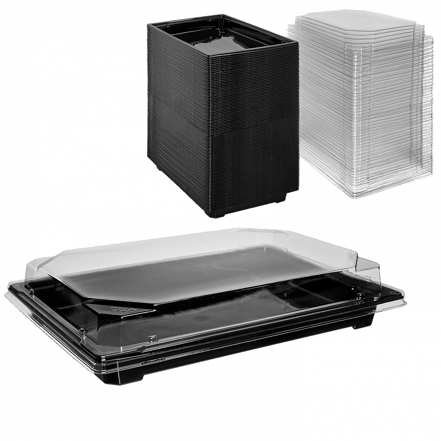 С-25 Контейнер для суши черный 24х16 - [220шт] с крышкой