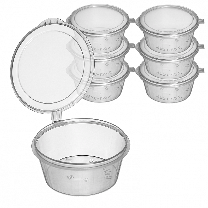 Соусник с внутренней крышкой круглый 50мл изготовлен из прочного пищевого пластика (ПП) и имеет прозрачный цвет. Этот соусник предназначен для хранения, продажи и подачи различных соусов и приправ.