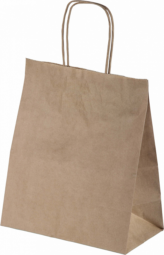 100 % биоразлагаемый бумажный крафт пакет с кручеными ручками, прямоугольное дно, хорошо склеены дно и боковины, плотность 70 г/м2. Идеально подходят для транспортировки пищевых продуктов и бытовых товаров.