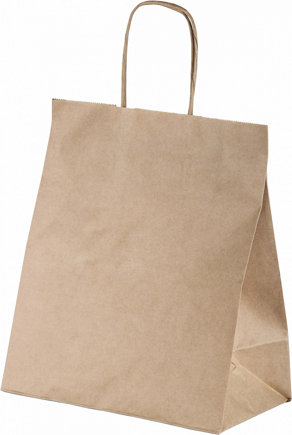 100 % биоразлагаемый бумажный крафт пакет с кручеными ручками, прямоугольное дно, хорошо склеены дно и боковины, плотность 70 г/м2. Идеально подходят для транспортировки пищевых продуктов и бытовых товаров.