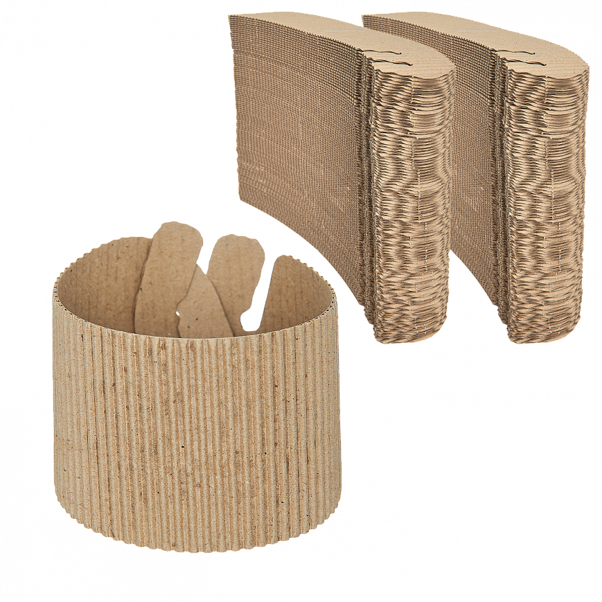 Держатель для стакана используется в кофейнях, как дополнительная защита рук, делает процесс питья кофе более комфортным. Изготовлен из 2-х слойного микрогофрокартона.