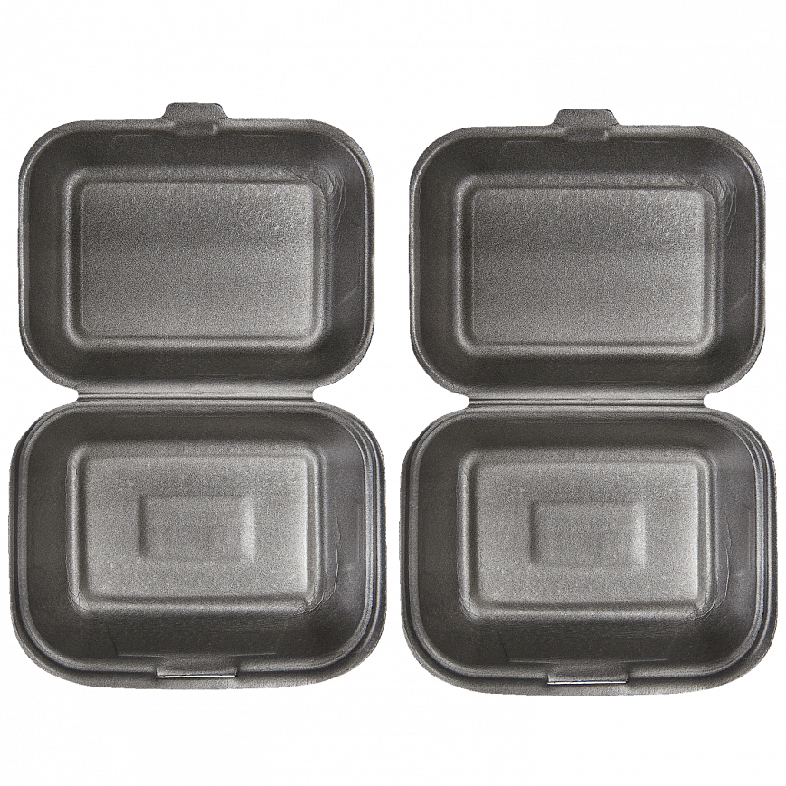 Одноразовый ланч-бокс для упаковки готовой еды на вынос. Выполнен из вспененного полистирола, который хорошо сохраняет температуру и обеспечивает сохранность продуктов при транспортировке. Полностью отвечает гигиеническим нормам. Ланч-бокс можно использовать для разогрева продуктов в микроволновой печи. Внешняя поверхность подойдет для размещения логотипа или рекламной информации. Цвет — черный.